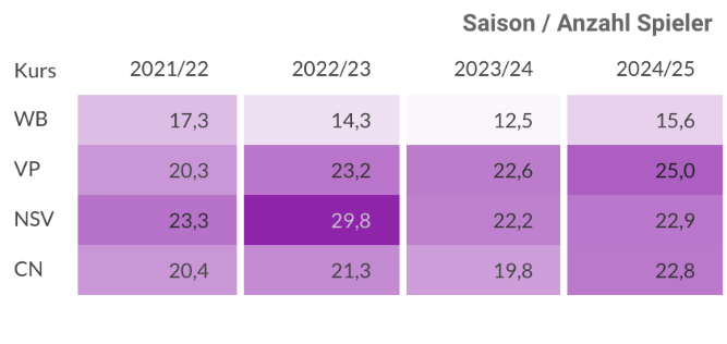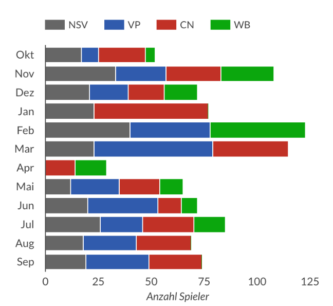 Interessanterweise ist die Beteiligung an den Ligaspielen in den Herbst- und Wintermonaten, vor allem im ersten Quartal, trotz der meist kühleren Temperaturen deutlich höher als in den Sommermonaten. Der Grund: In den warmen Monaten findet die nationale Turniersaison statt, bei der viele Spielerinnen und Spieler auf Turnieren in ganz Deutschland unterwegs sind. Die Liga bietet somit gerade in der kälteren Jahreszeit eine willkommene Gelegenheit, den Sport aktiv auszuüben und das Spielniveau zu halten.